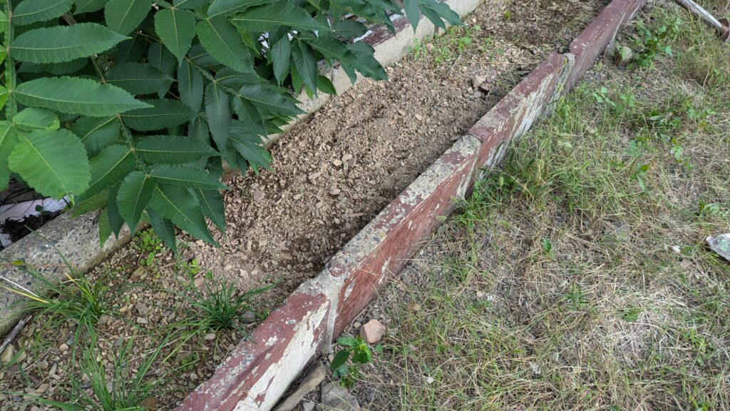パセリをじゃんじゃん使いたいので、周囲の雑草の中にパセリの種もパラパラ。