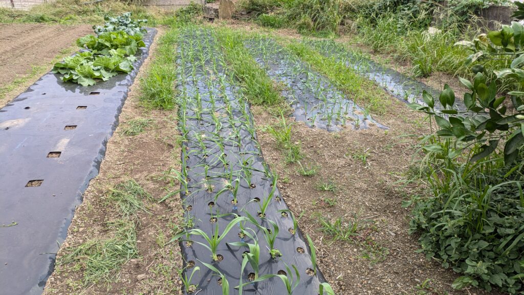 ちなみにニンニクは、持て余した畑を見かねた近所のおじちゃんが「ほたっとっていいちゃけ植えてみらんね!」と大量の球根と専用マルチを持ってきてくれました。大感謝。(無事芽が出てきてホッとしております・・・。)